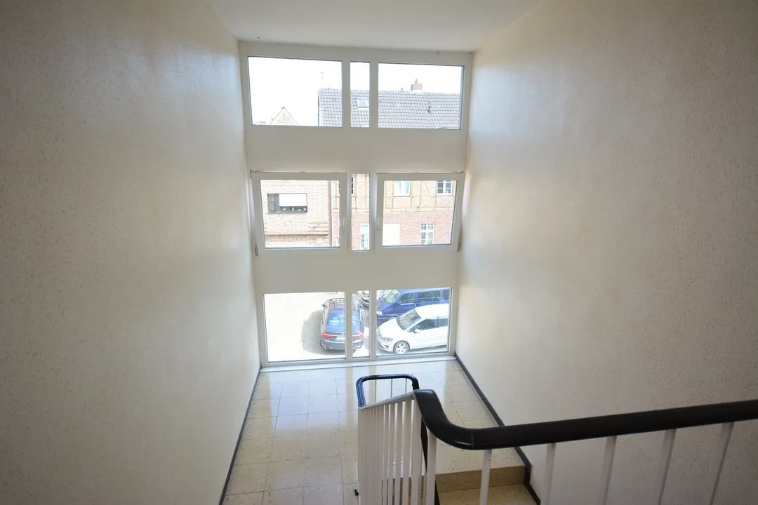 Da Haus ist umfänglich in 2011 energetisch saniert worden. Das Flachdach wurde mit Dämmung aufgedoppelt und neu mit Bitumen belegt, die Außenwände wurden um 18 cm gedämmt, verputzt und neu gestrichen. Die Haustüranlage, alle Fenster, sowie auch die Schaufenster wurden erneuert. Das Treppenhaus ist neu gestrichen worden.