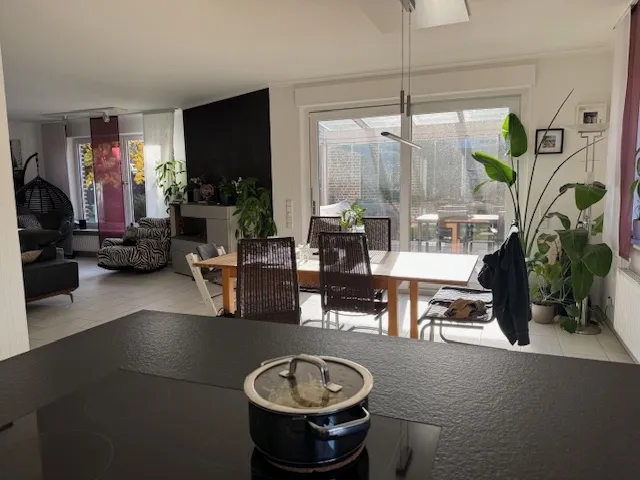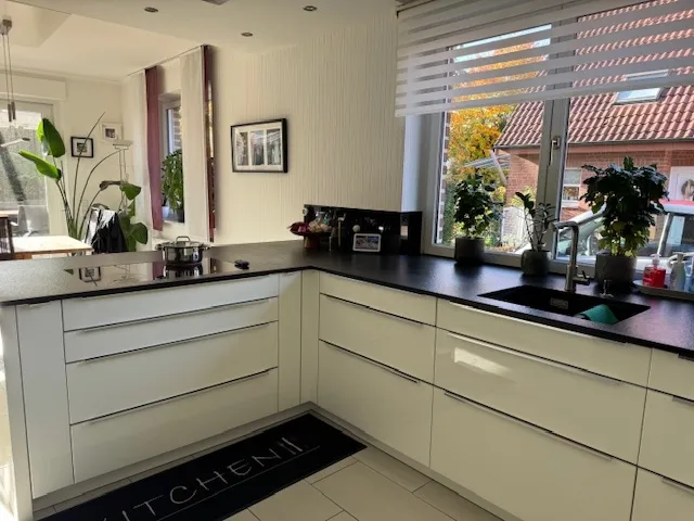 Dieses Einfamilienhaus wurde im Jahr 1993 in massiver Bauweise errichtet. Die ruhige Sackgassenlage schenkt Ihnen mit dem überdachten Eingang ein regensicheres Ankommen. Im Erdgeschoss empfängt Sie eine großzügige Diele mit maßgefertigtem Garderobenschrank, ein ruhiges Büro - zur Rückseite gelegen - und ein geräumiges Gäste-WC. Das Herzstück bildet die offene Küche mit Kochblock und großer Induktionsfläche - ein Ort, an dem Kochen zum Erlebnis wird. Der direkte Blickkontakt zum Essplatz und in den Wohnbereich schafft Nähe und eine behagliche Atmosphäre, während Sie sich mit der Familie oder Ihren Freunden zum geselligen Miteinander treffen. Der sich anschließende Kaltwintergarten eröffnet Ihnen weitere Möglichkeiten Ihre persönlichen Ansprüche zu verwirklichen. Der liebevoll angelegte Garten lädt mit verschiedenen Plätzen - ob in der Sonne oder im Schatten - zu jeder Jahreszeit zum Genießen ein.