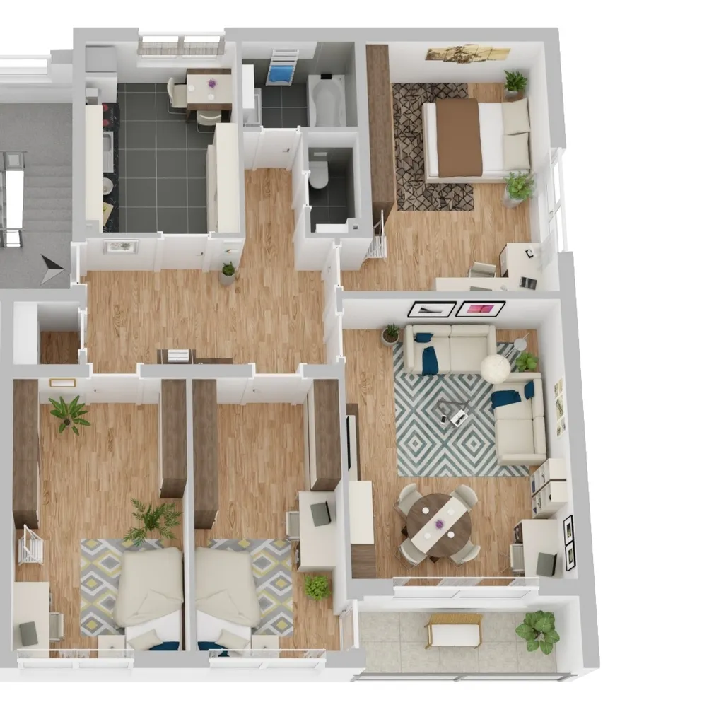 Drei weitere lichtdurchflutete Zimmer bieten flexible Nutzungsmöglichkeiten- ob als Schlafzimmer, Homeoffice oder Gästezimmer, ganz nach Ihrem Bedarf.