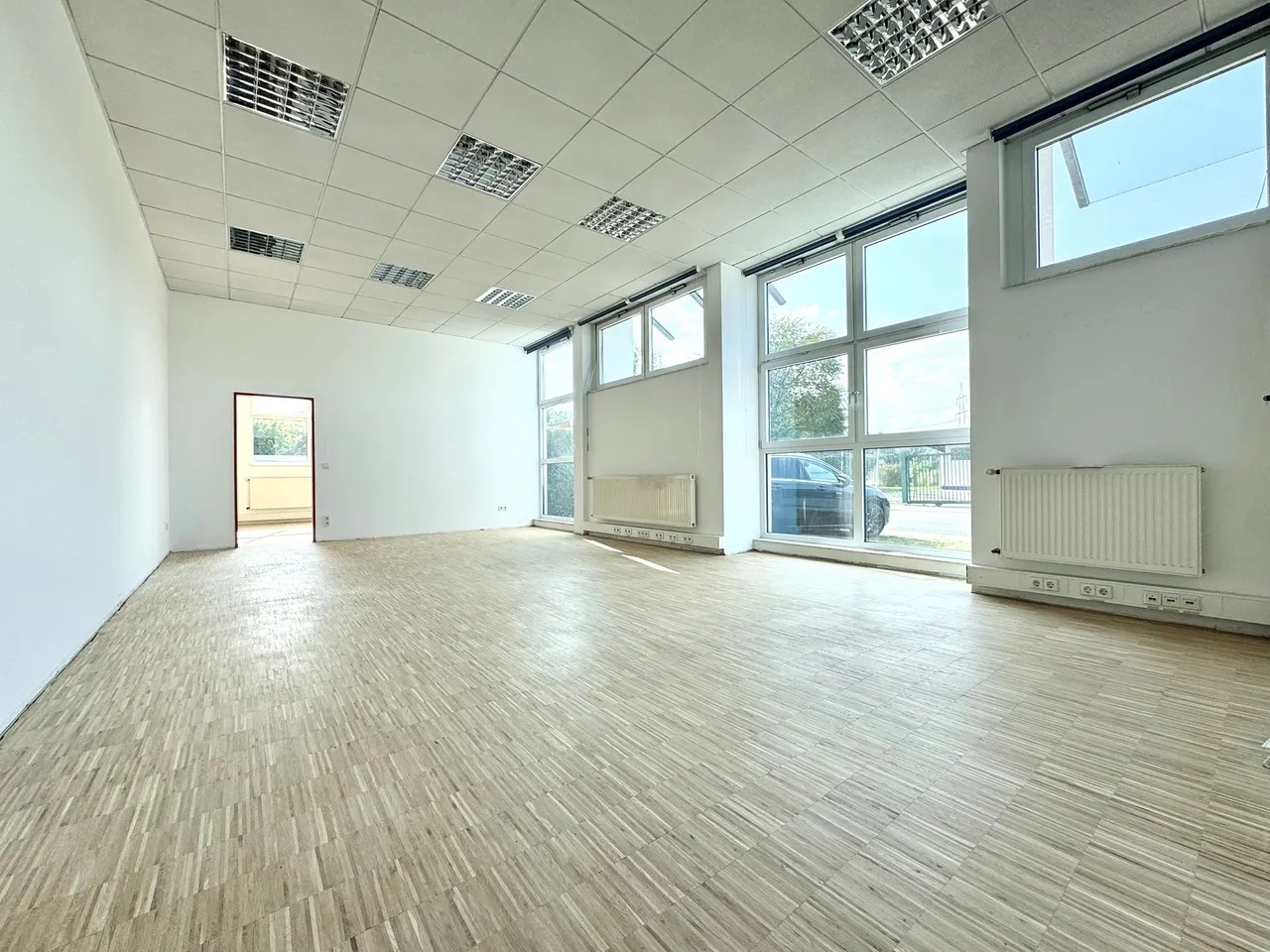 Insgesamt stehen rund 214 m² Gewerbefläche zur Verfügung, verteilt auf zwei Ebenen: das Erdgeschoss mit ca. 130 m² sowie das Obergeschoss mit ca. 84 m².