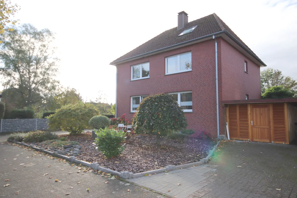 Der Außenbereich überzeugt mit einem liebevoll angelegten Ziergarten, einem gepflegten Gemüsegarten und einem gemütlichen Gartenhaus. Eine geräumige Garage sowie ein praktischer Fahrradschuppen bieten zusätzlichen Komfort und Stauraum.
